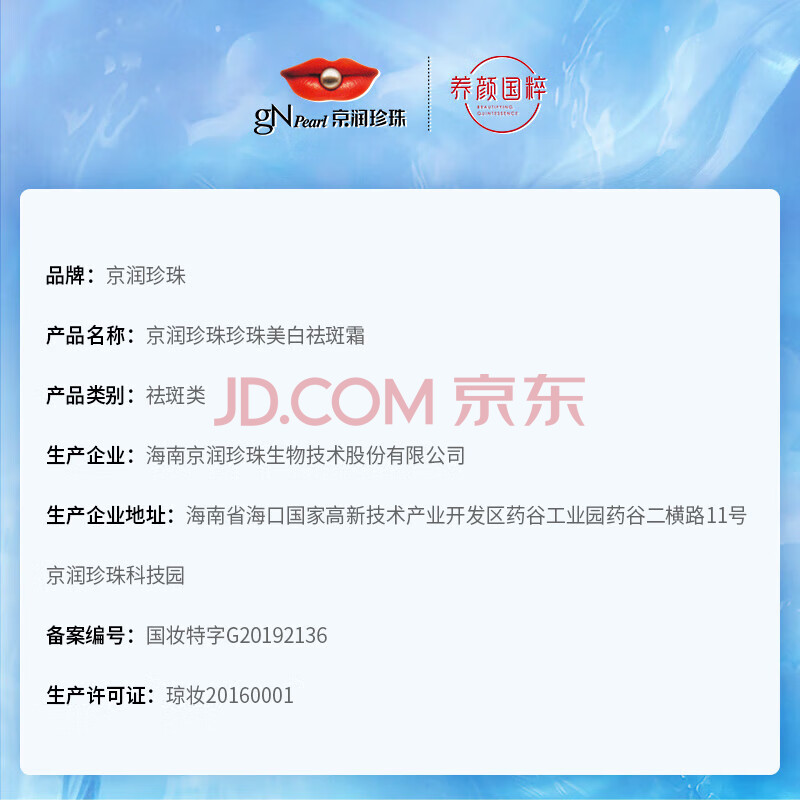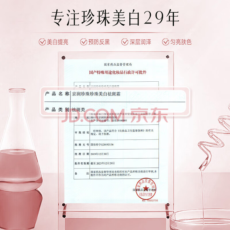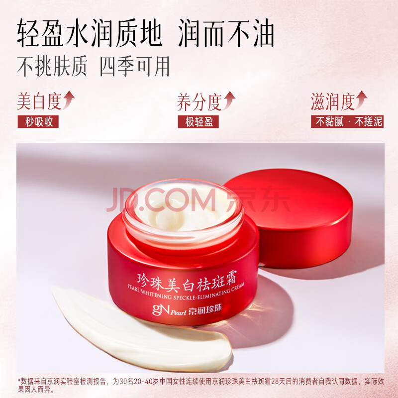 商品相册:京润珍珠(gNPearl)美白祛斑霜30g淡化斑点去黑色素珍珠膏面霜烟酰胺透亮第