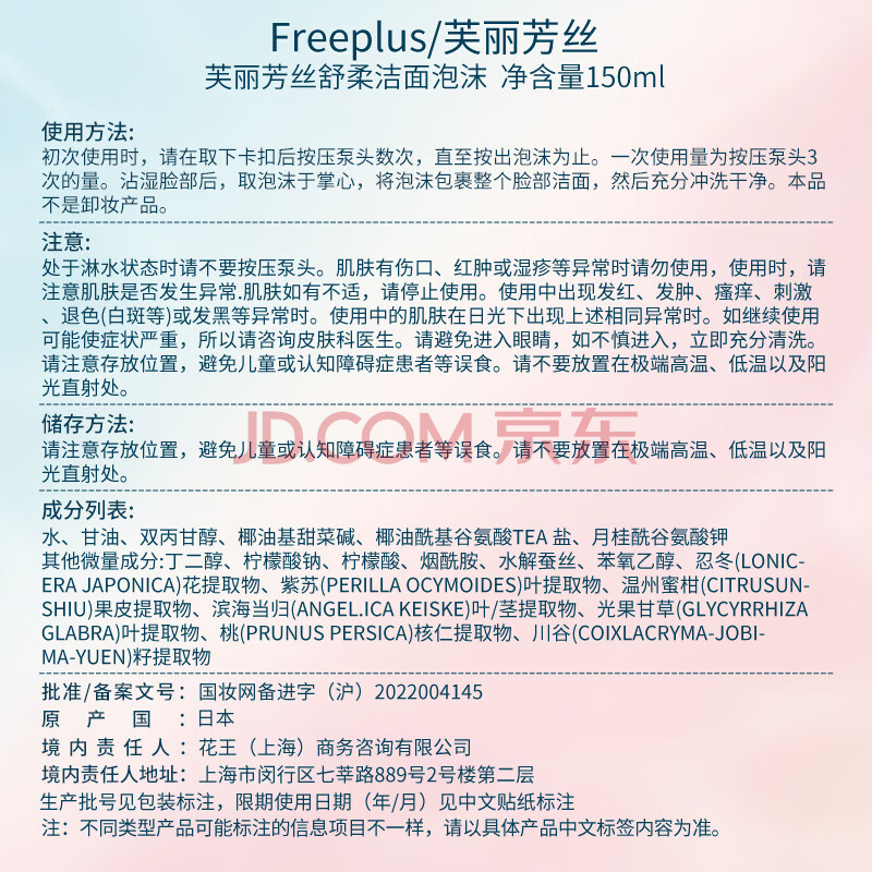 商品相册:芙丽芳丝(Freeplus)洗面奶男女士氨基酸舒柔洁面泡沫150ml第