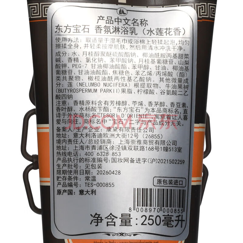 商品相册:东方宝石香氛淋浴乳250ml意大利进口沐浴露持久留香水润嫩肤男女通用便携第
