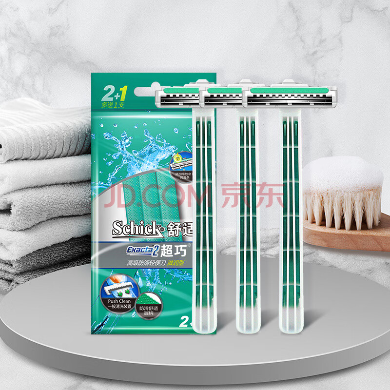 商品相册:舒适(Schick)轻便男士手动便携刮胡刀【2+1支装】快速方便剃须刀第