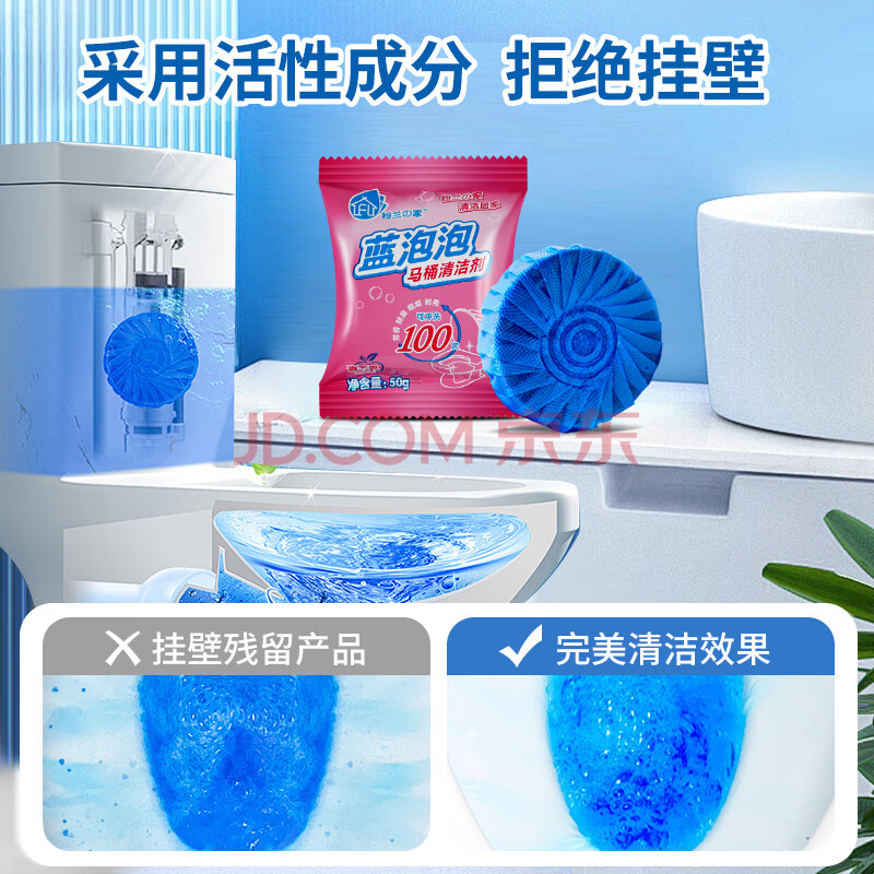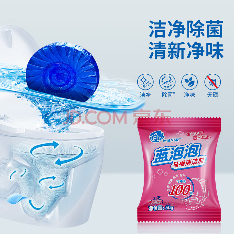 商品相册:粉兰之家洁厕宝30粒蓝泡泡洁厕灵家庭厕所马桶自动清洁剂免刷洗除臭块第1张/共9