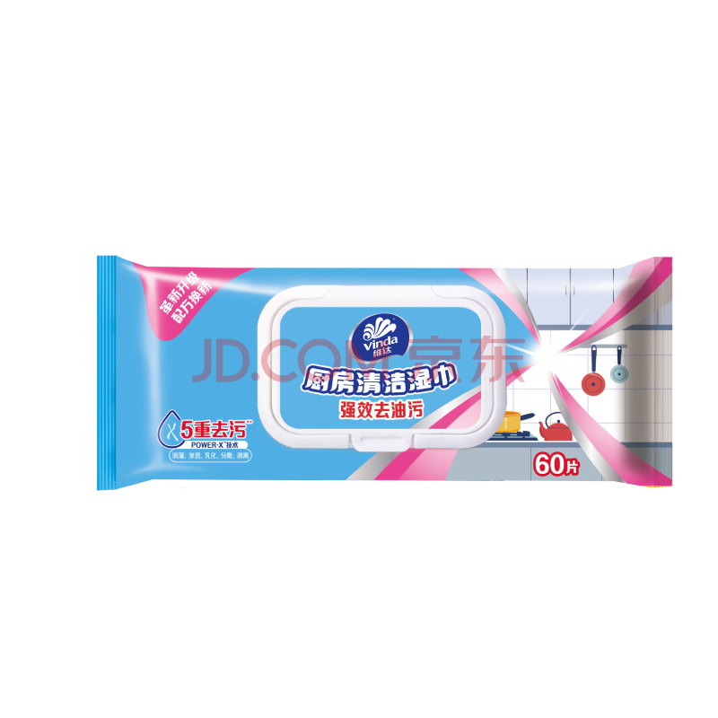 商品相册:维达(Vinda)厨房湿巾 60片*单包 厨房用纸 厨房湿巾去油污第