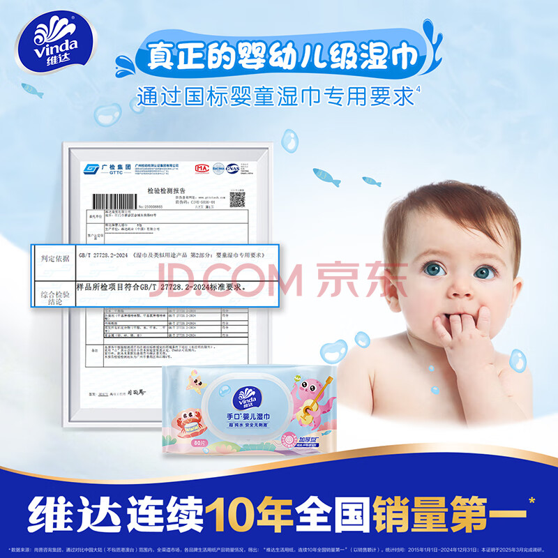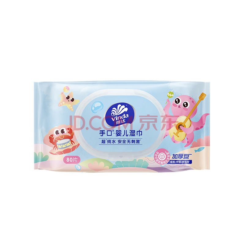 商品相册:维达(Vinda)婴儿手口湿巾80片*单包 超净化纯水加大加厚湿纸巾试用装新旧随机第