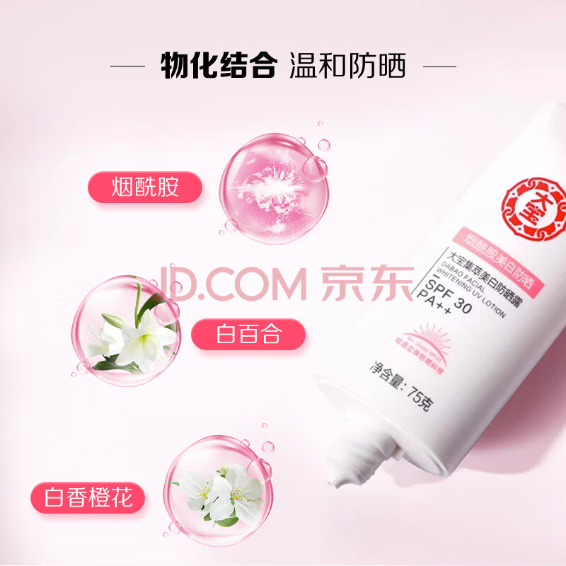 商品相册:大宝集萃美白防晒露75g烟酰胺美白防晒霜面部护肤品SPF30+第