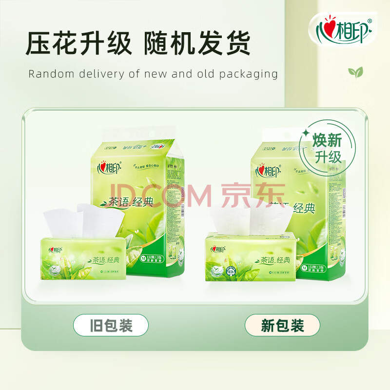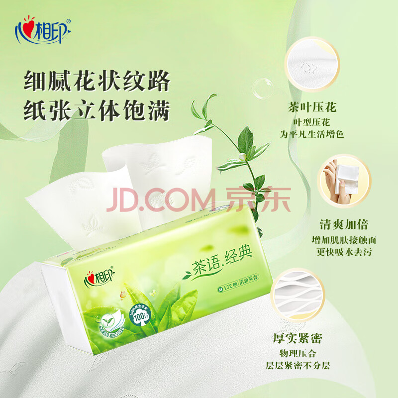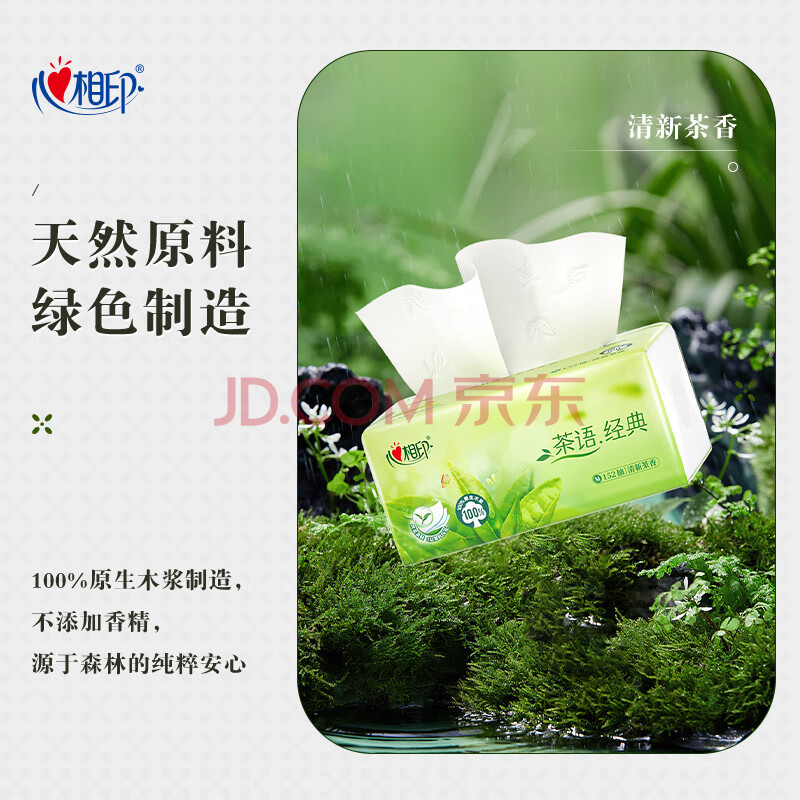 商品相册:心相印抽纸 茶语系列3层152抽*3包中规格 100%原生木浆 软抽纸巾 新旧发第