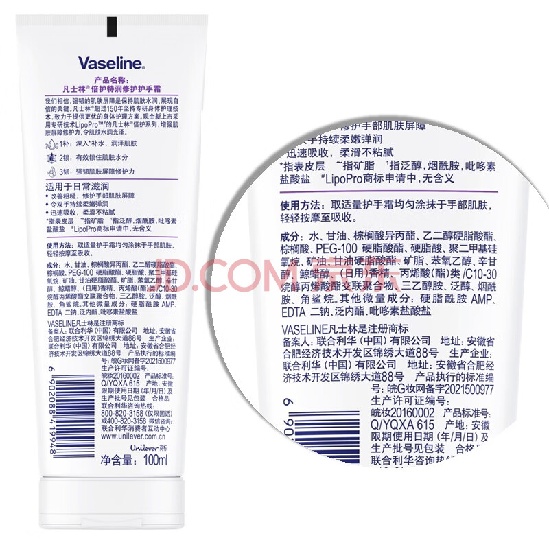 商品相册:凡士林[进店必买]护手霜100ml保湿滋润持久留香便携款防干裂修护倒刺第1张/共8