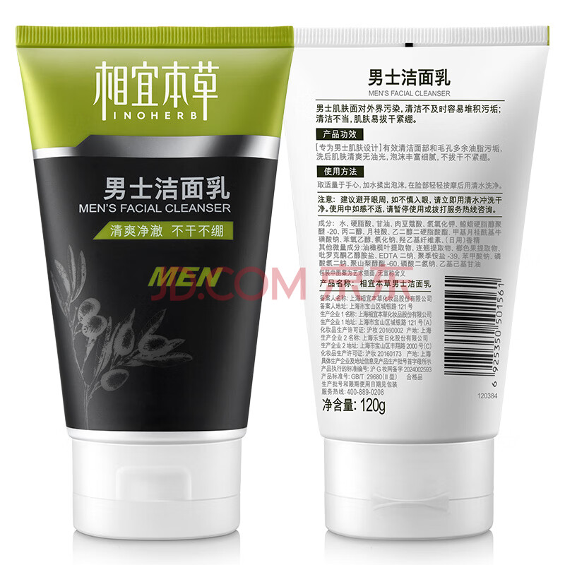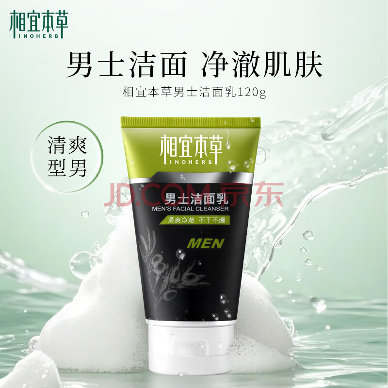 商品相册:相宜本草男士洁面乳120g 洗面奶深度清洁净澈毛孔控油不紧绷第