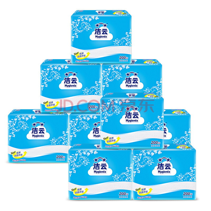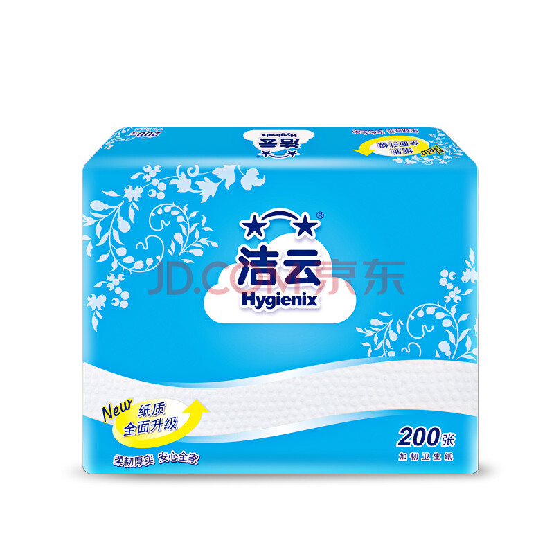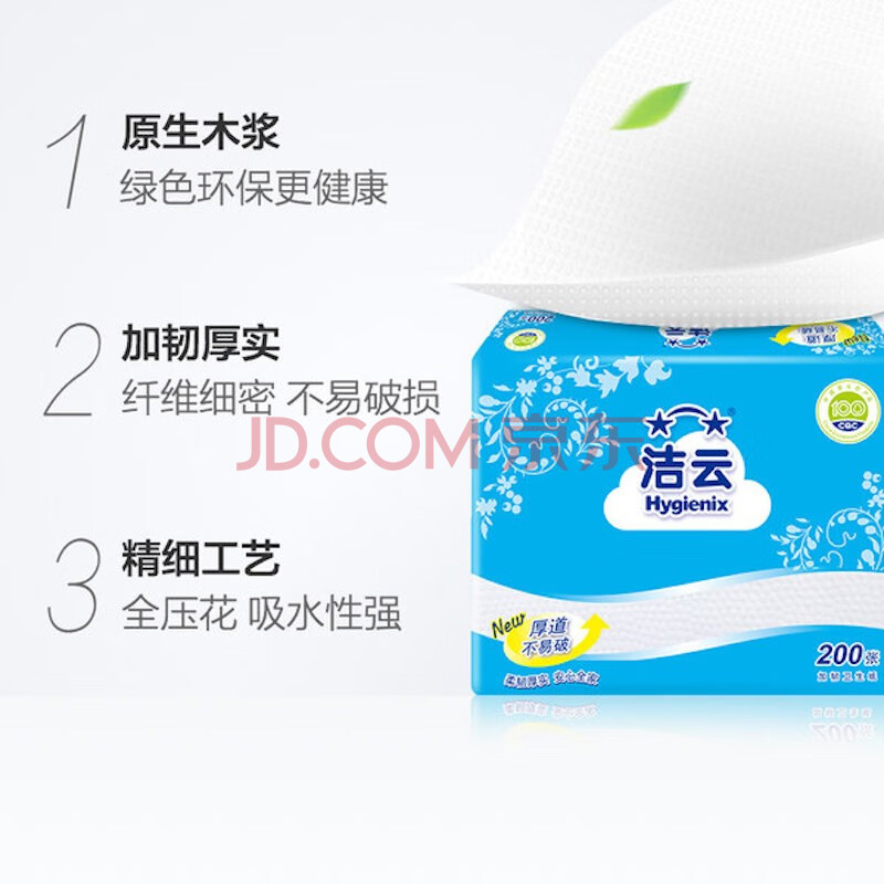 商品相册:洁云卫生纸 加韧方包200张*8包 抽纸厕纸替代卷纸 平板纸厕所专用纸巾第