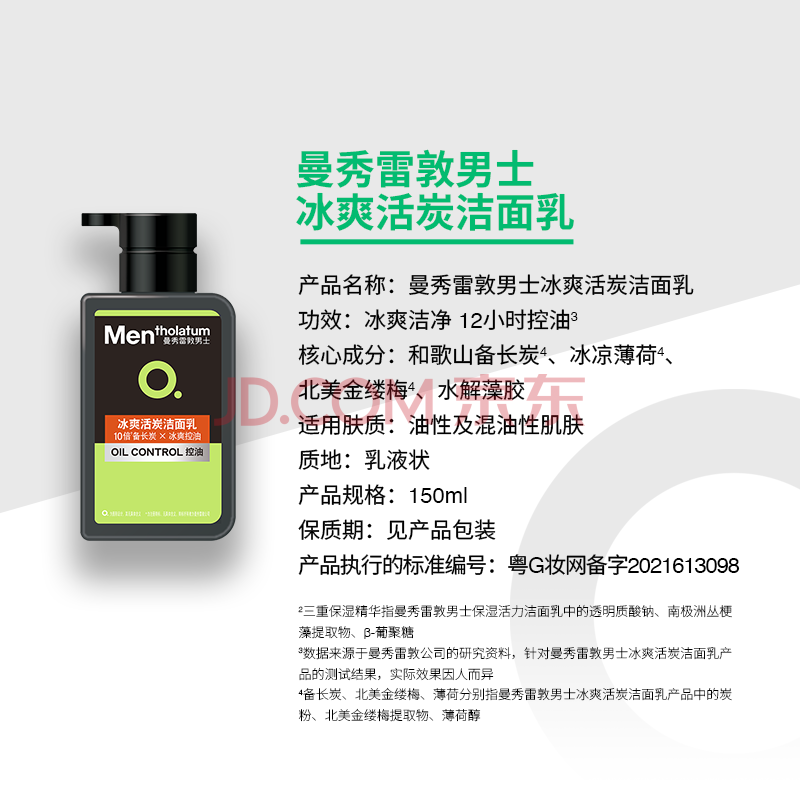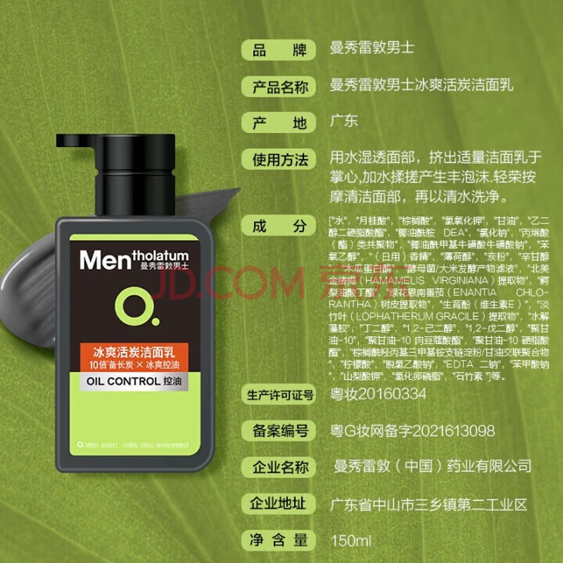 商品相册:曼秀雷敦男士专用冰爽活炭洗面奶150ml 深层清洁去黑头控油洁面乳男生礼物第
