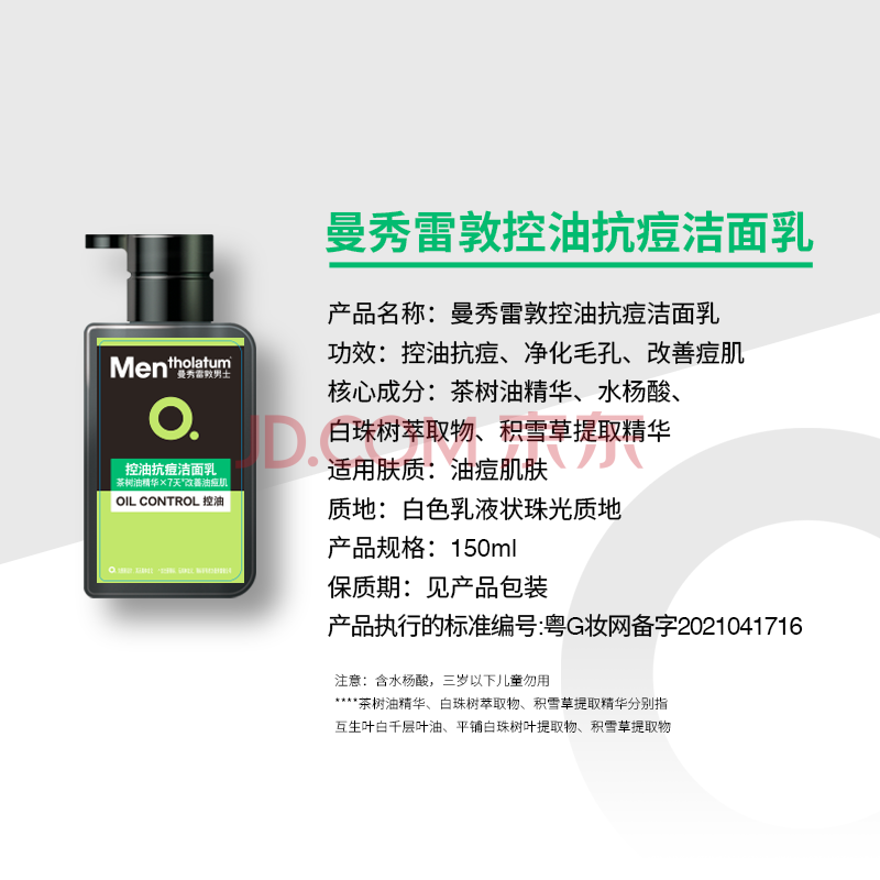 商品相册:曼秀雷敦男士专用控油抗痘洗面奶150ml去油去黑头水杨酸洁面送男生第