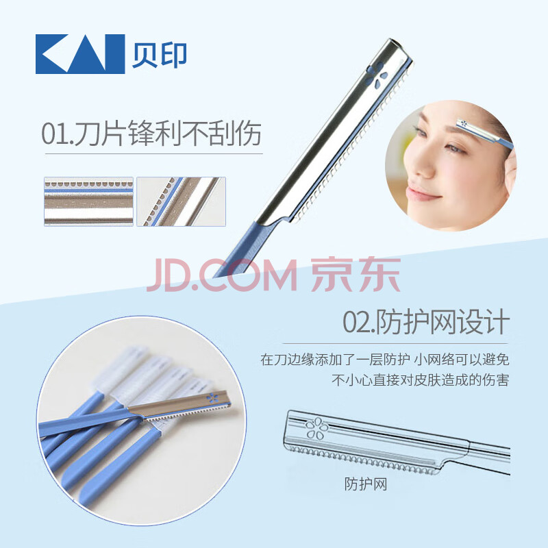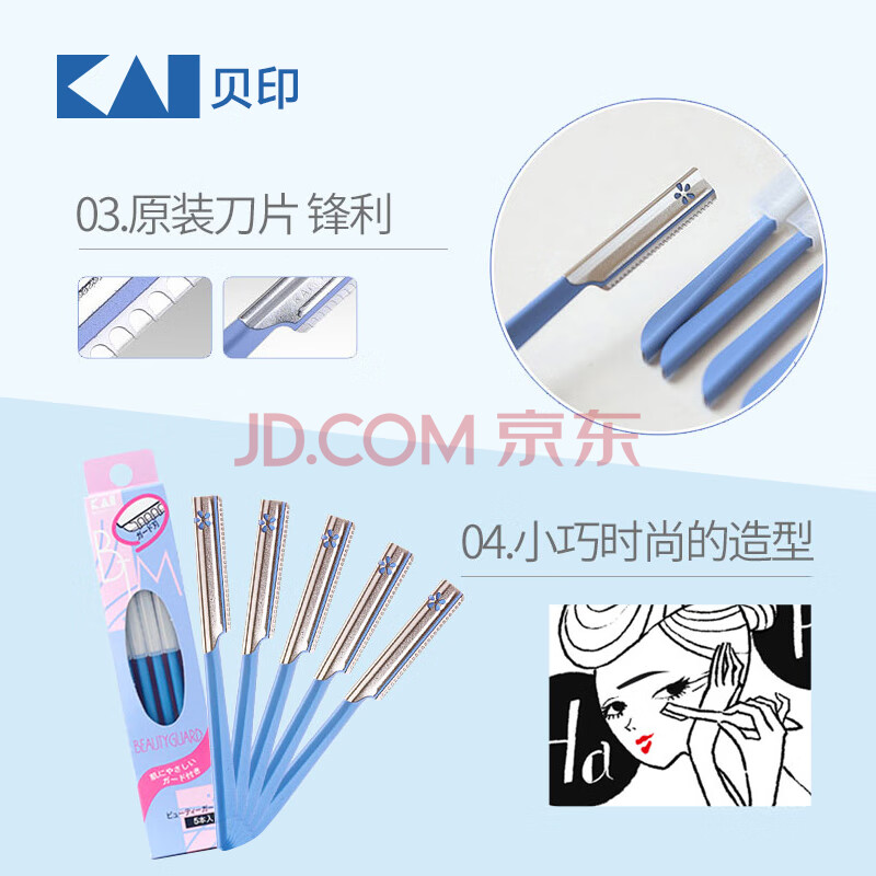 商品相册:貝印(KAI)日本进口 刮修眉刀女士男士(5把)不易伤肤 新手可用刀片第