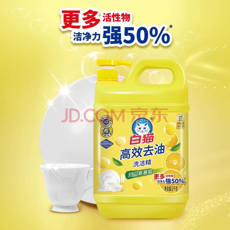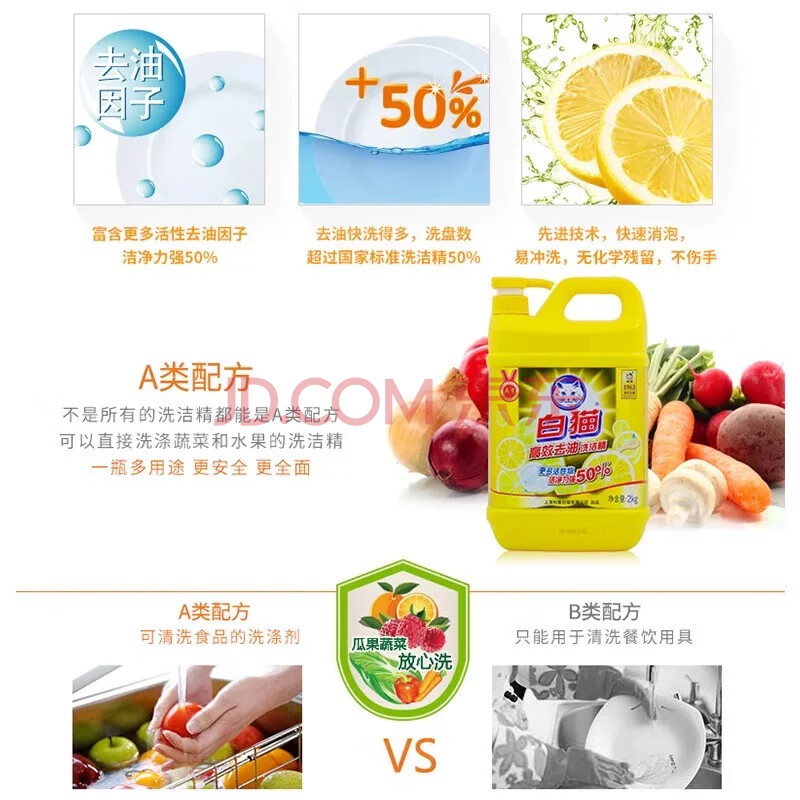 商品相册:白猫 高效去油洗洁精2kg A类食品用含更多去油因子轻松去油洗洁精第