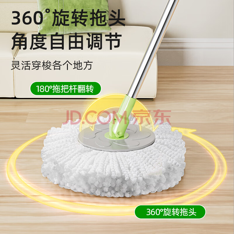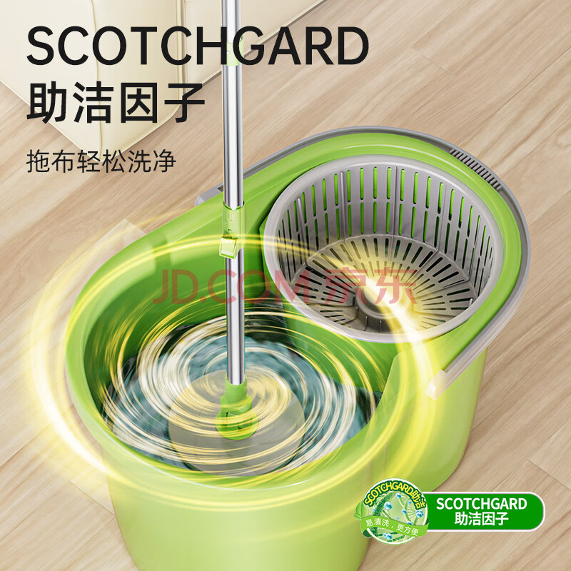 商品相册:3M思高旋转拖把35cm杆伸缩100-130cm2头T1加高桶身家用一拖净免手洗第