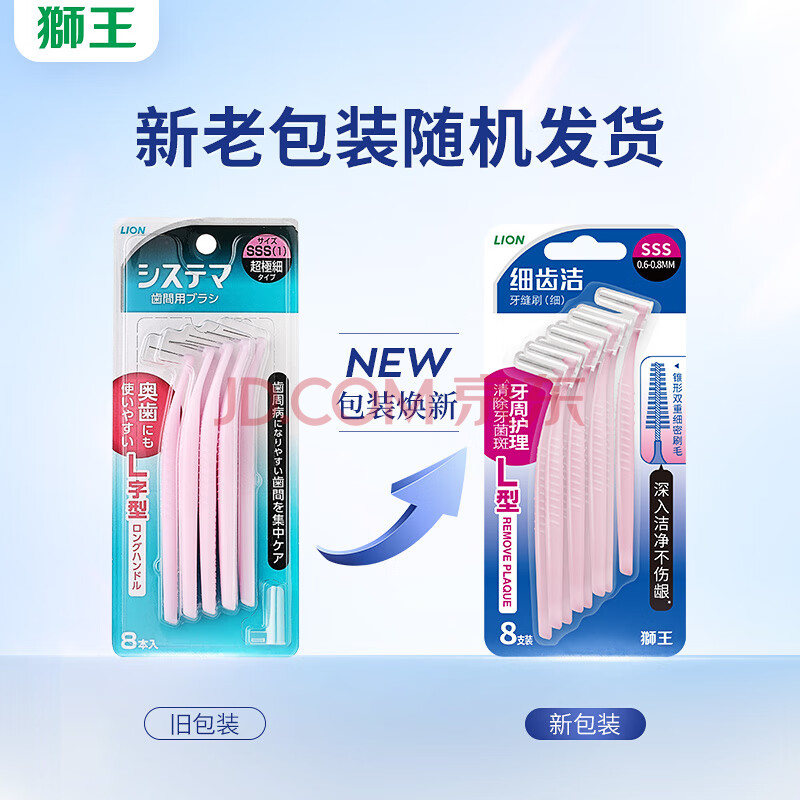 商品相册:狮王(lion)细齿洁正畸专业牙刷超细sss*8支L型可重复新老装混发第1张/共6