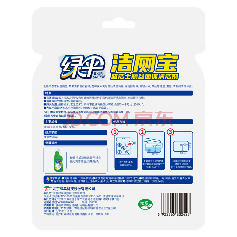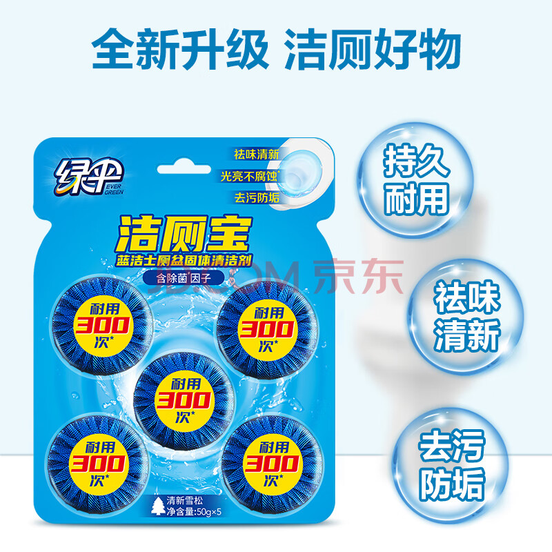 商品相册:绿伞洁厕宝 厕所马桶洁厕块 洁厕剂 自动清洁去异味 50g*5块第1张/共6