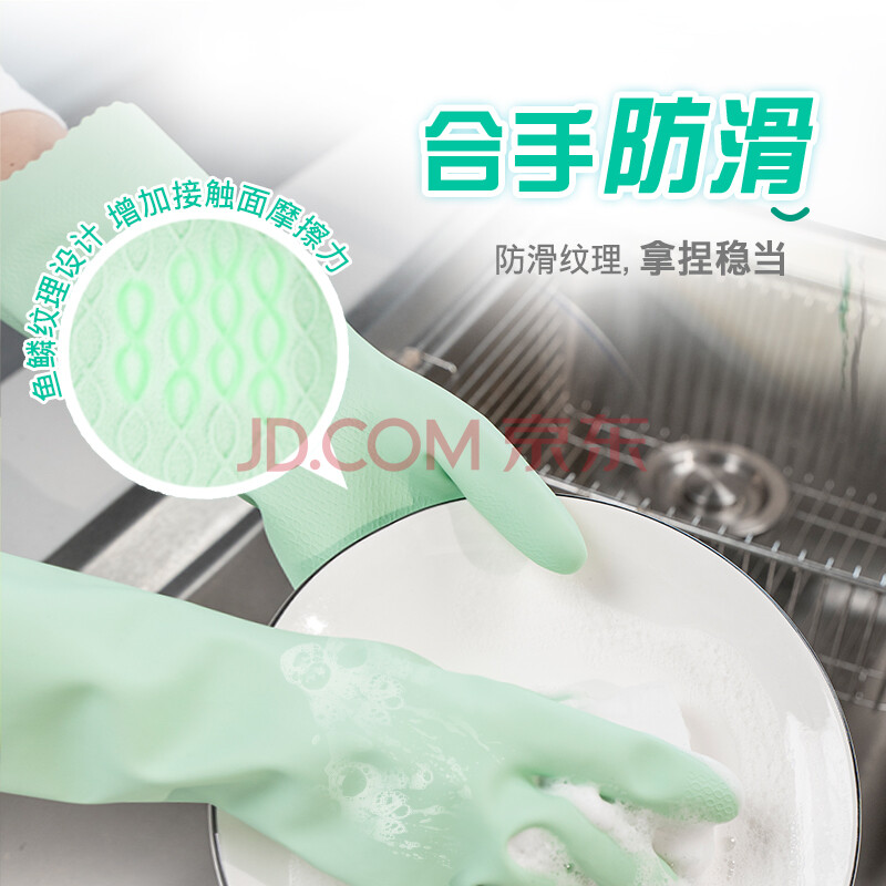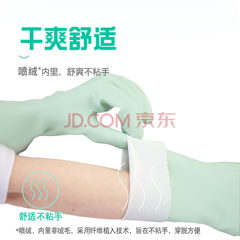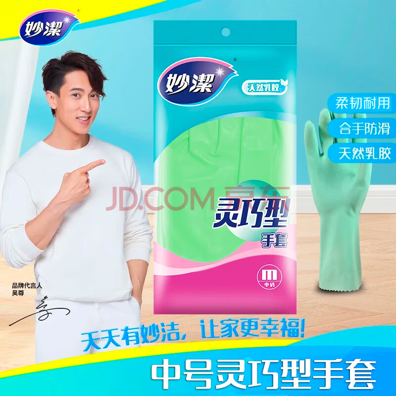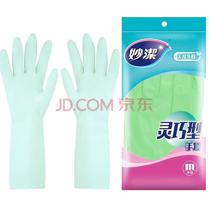 商品相册:妙洁灵巧型绒里手套 天然乳胶 1双 中号 清洁手套 新老包装随机发货第