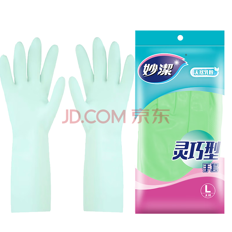 商品相册:妙洁灵巧型柔韧手套 天然乳胶 1双装大号 清洁洗衣洗碗家务做饭手套第