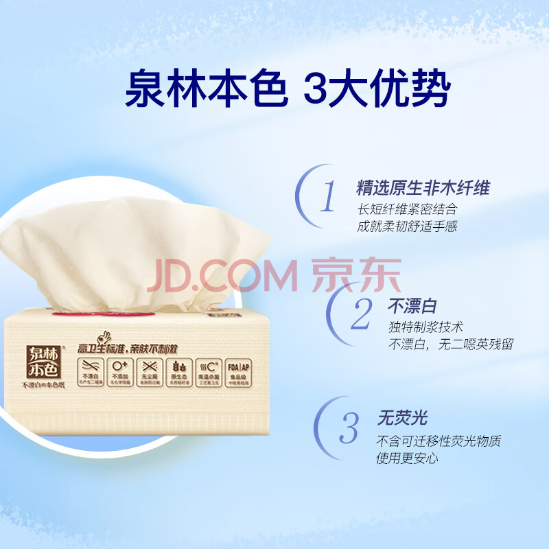商品相册:泉林本色柔韧抽纸3层133抽*3包亲肤宝宝婴儿纸巾卫生纸餐巾纸面巾纸更健康第