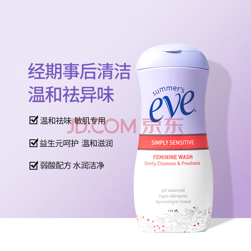商品相册:夏依eve 女性私处洗液 私密护理液敏感肌日常型119ml 含益生元和乳酸第
