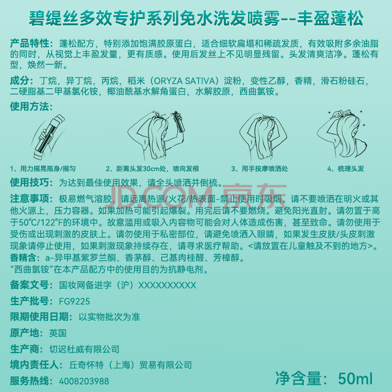 商品相册:碧缇丝(batiste)旅行便携免洗干发喷雾清爽高颅顶懒人神器蓬松祛味天然养护50ml第