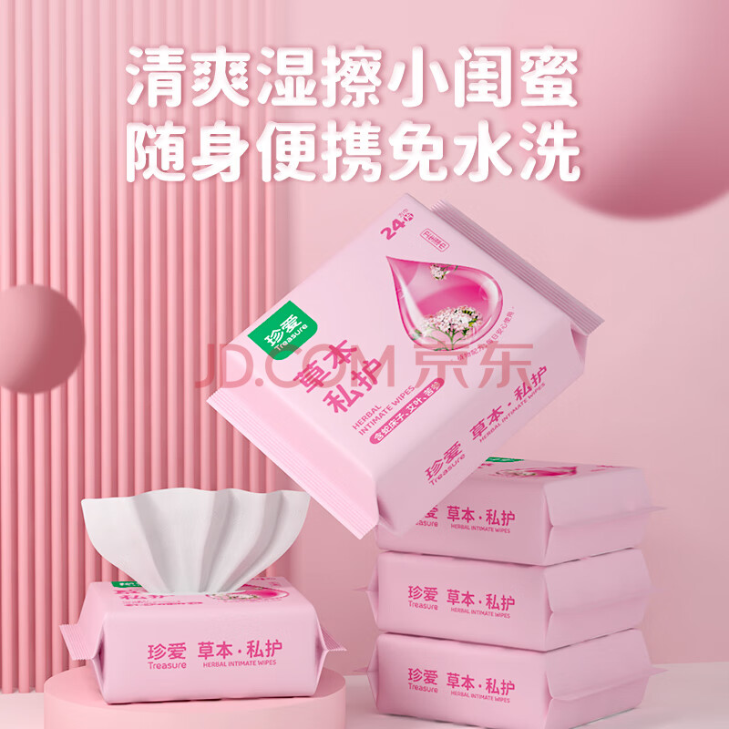 商品相册:珍爱私处湿巾房事清洁杀菌卫生湿纸巾男女可用24片*4包第1张/共7
