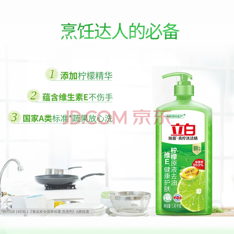 商品相册:立白 青柠洗洁精1.45kg食品用维E精华不伤手去重油果蔬适用洗碗洗涤灵第