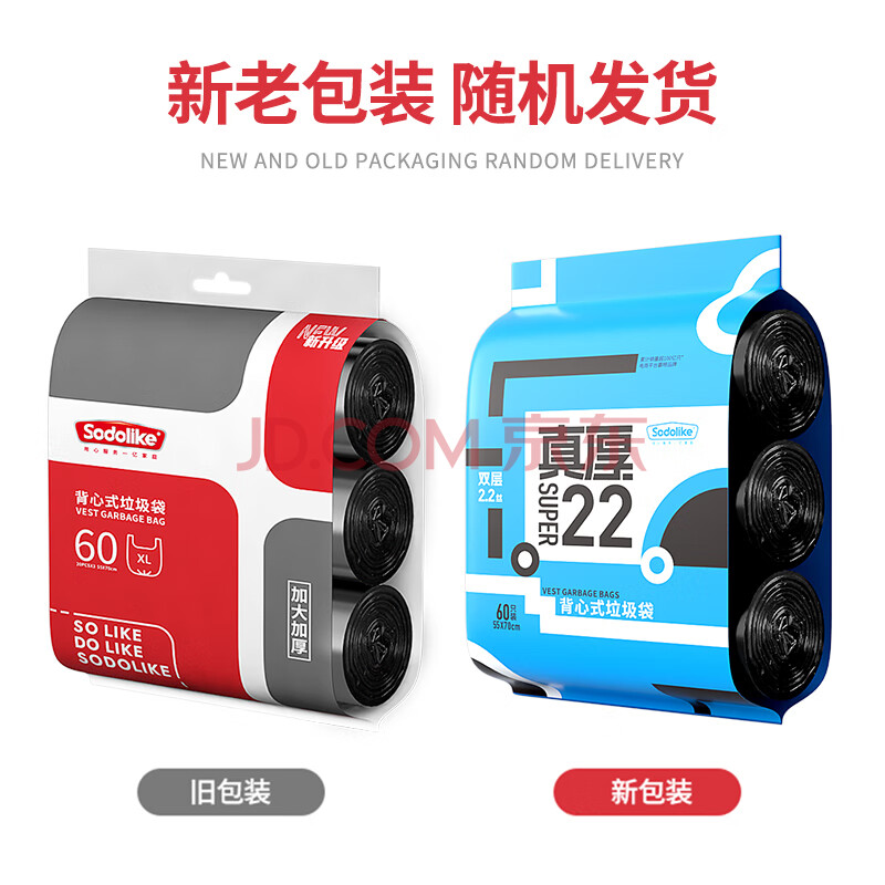 商品相册:Sodolike尚岛背心垃圾袋黑色55cm*70cm60只单面1.1丝点断手提第
