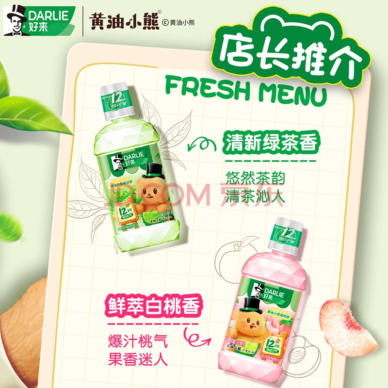 商品相册:好来(DARLIE)(原黑人)清心绿茶漱口水500ml 联名黄油小熊减少细菌滋生新旧包装第1张/共7