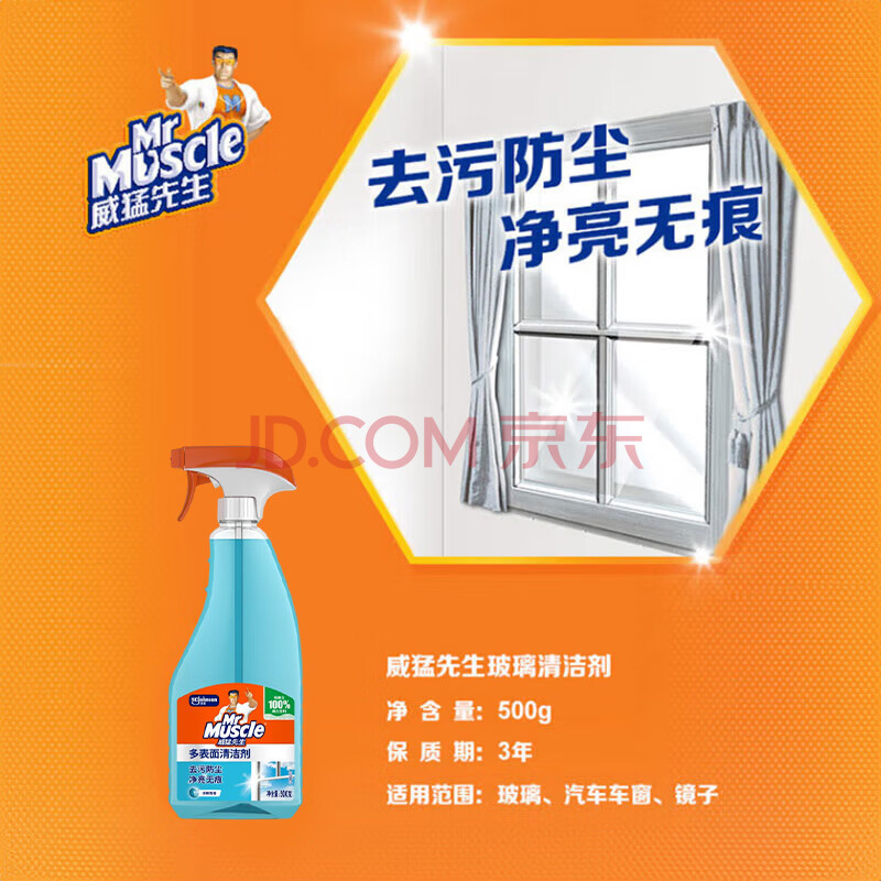 商品相册:威猛先生(Mr Muscle) 玻璃清洁剂 500g 浴室车窗清洁剂 不留水痕 去污防尘 持久洁净第1张/共7