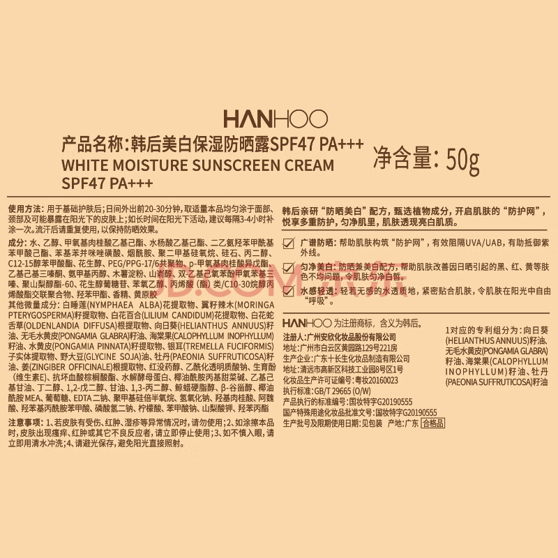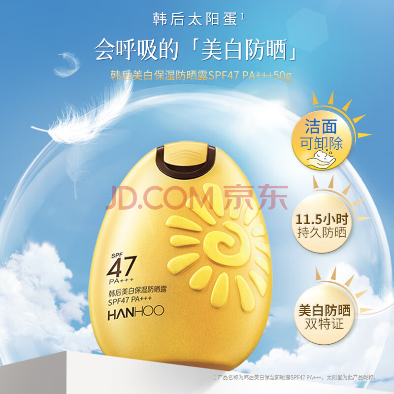 商品相册:韩后美白保湿高倍防晒霜50g 隔离防晒乳男女旅行学生军训太阳蛋第