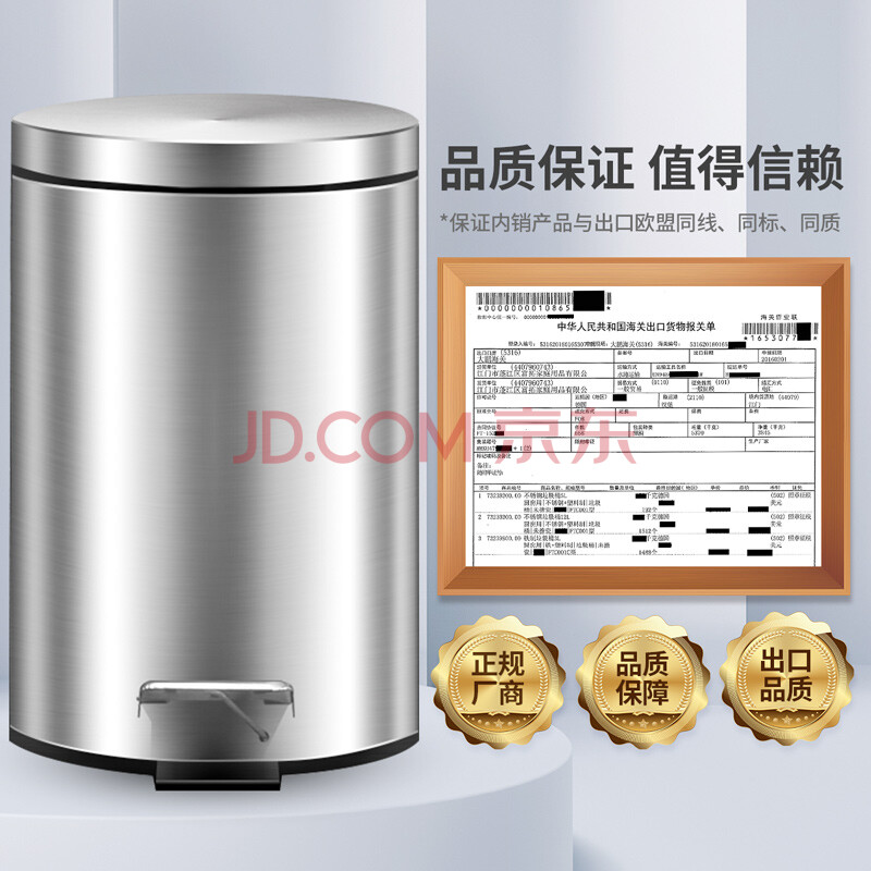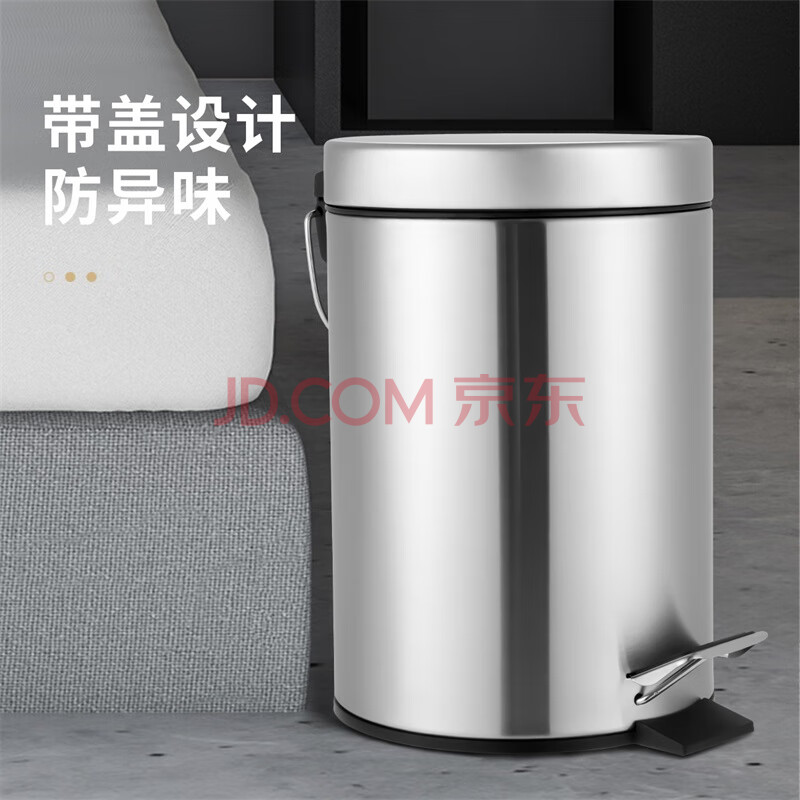 商品相册:欧润哲垃圾桶脚踏带盖5L镜光不锈钢客厅卧室厨房卫生间家用办公内外双桶第1张/共9