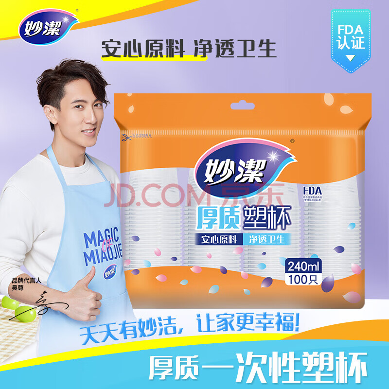 商品相册:妙洁 厚质塑杯 240mL100只一次性航空杯 饮料果汁茶水杯家用户外商用第