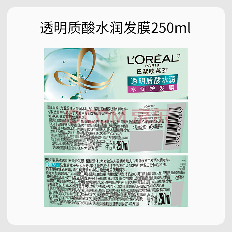 商品相册:欧莱雅透明质酸水润护发膜250ml 劲爽发根(新老包装随机发货)第