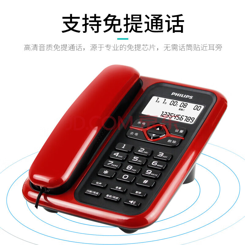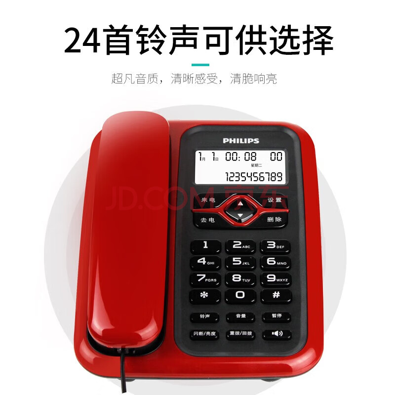 商品相册:飞利浦电话机座机 固定电话 办公家用 免电池 插线即用 CORD020红色第