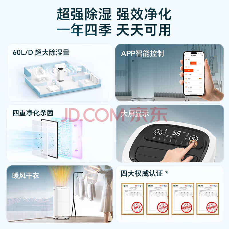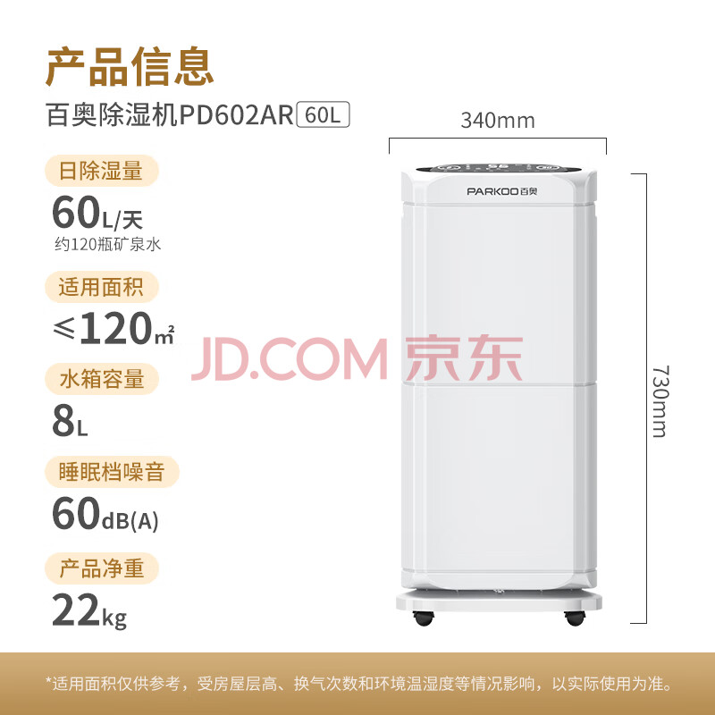 商品相册:百奥(PARKOO)除湿机/抽湿机 除湿量60升/天120㎡家用除湿器地下室别墅商用大功率工业抽湿器 净化干衣PD602AR第
