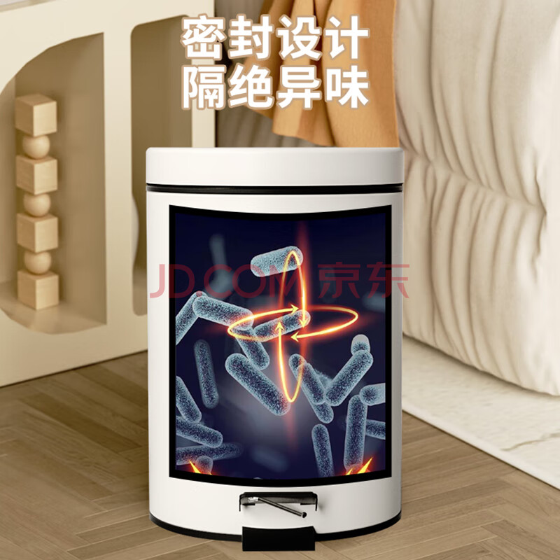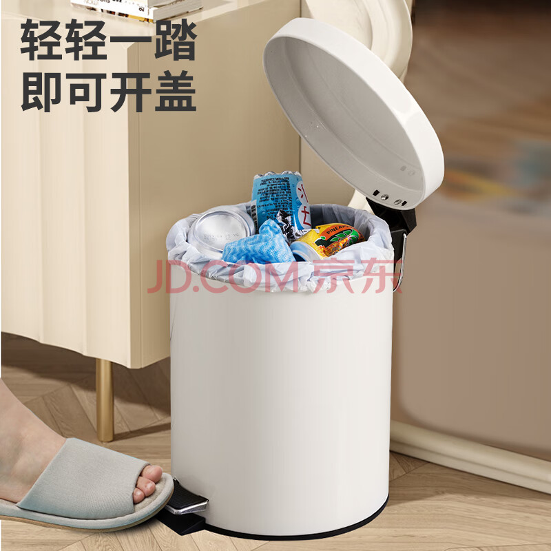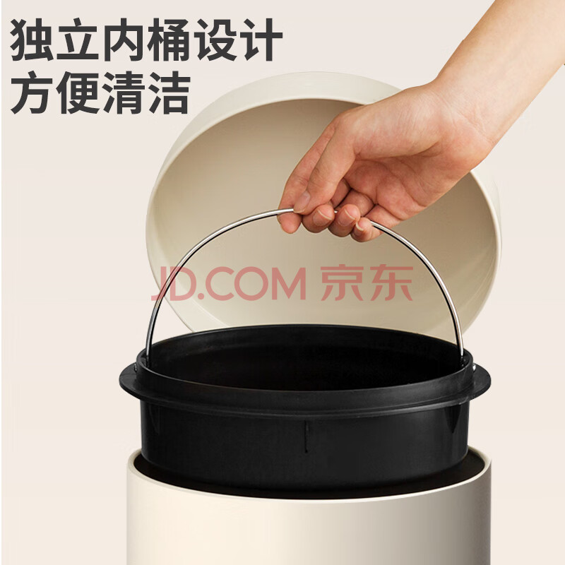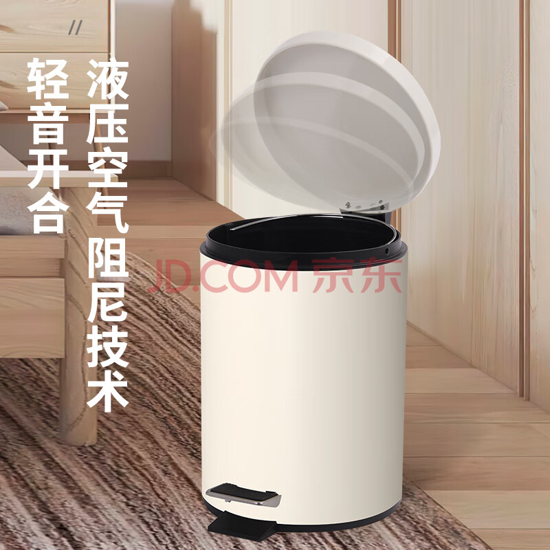 商品相册:欧润哲垃圾桶脚踏带盖 8L米白厨房客厅卧室卫生间家用缓降静逸内外双桶第