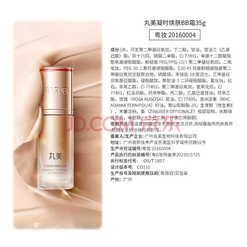 商品相册:丸美BB霜 凝时焕肤BB霜35g 持久遮瑕轻盈服帖 妆前打底 隔离霜裸妆感第1张/共8