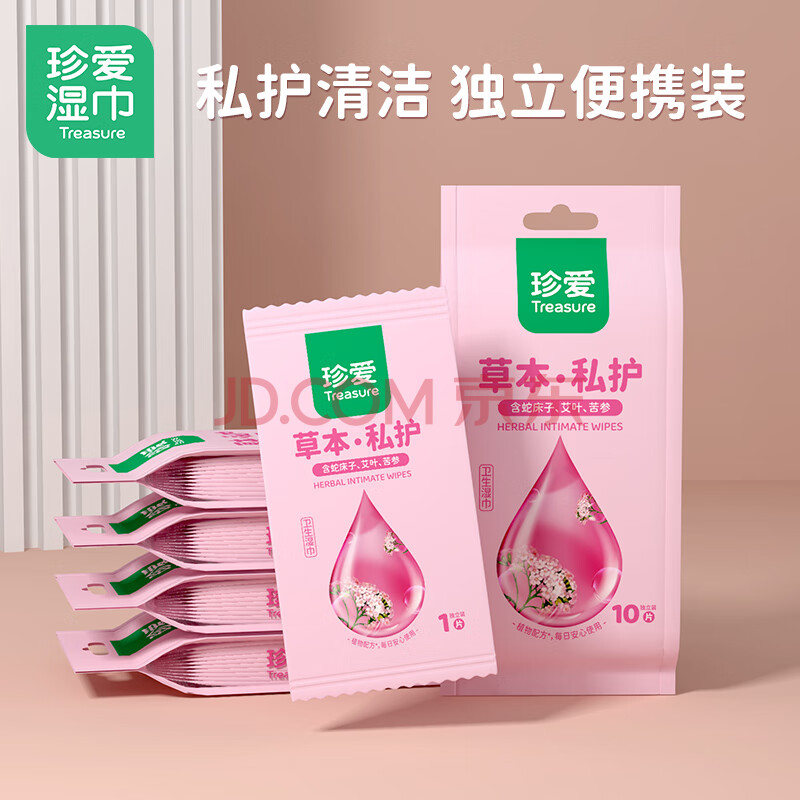 商品相册:珍爱私处湿巾房事清洁卫生杀菌湿纸巾男女可用10片*5包独立装第
