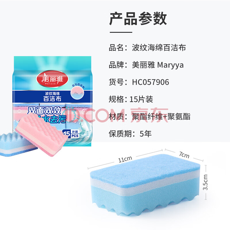 商品相册:美丽雅抗菌百洁布15片洗碗海绵厨房专用抹布刷碗吸水加厚去油污波纹海绵第