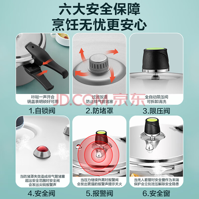 商品相册:爱仕达 ASD 高压锅防爆六保险8.6L铝合金大号压力锅明火专用YL26S2WG第