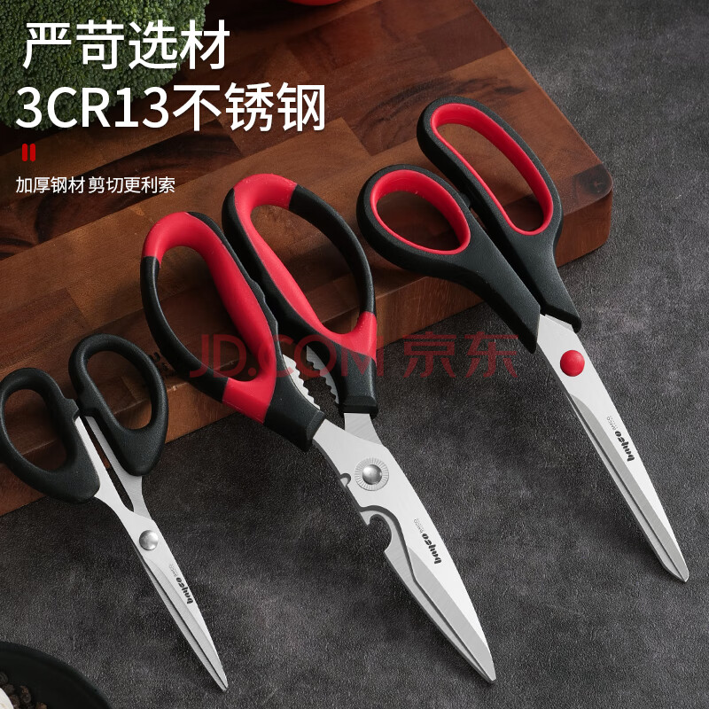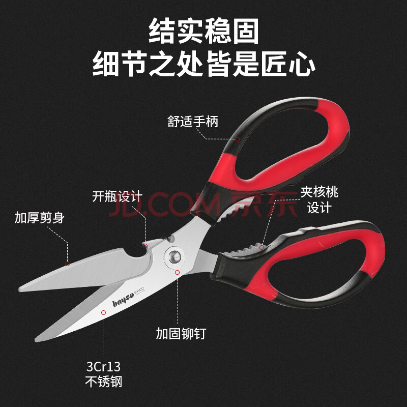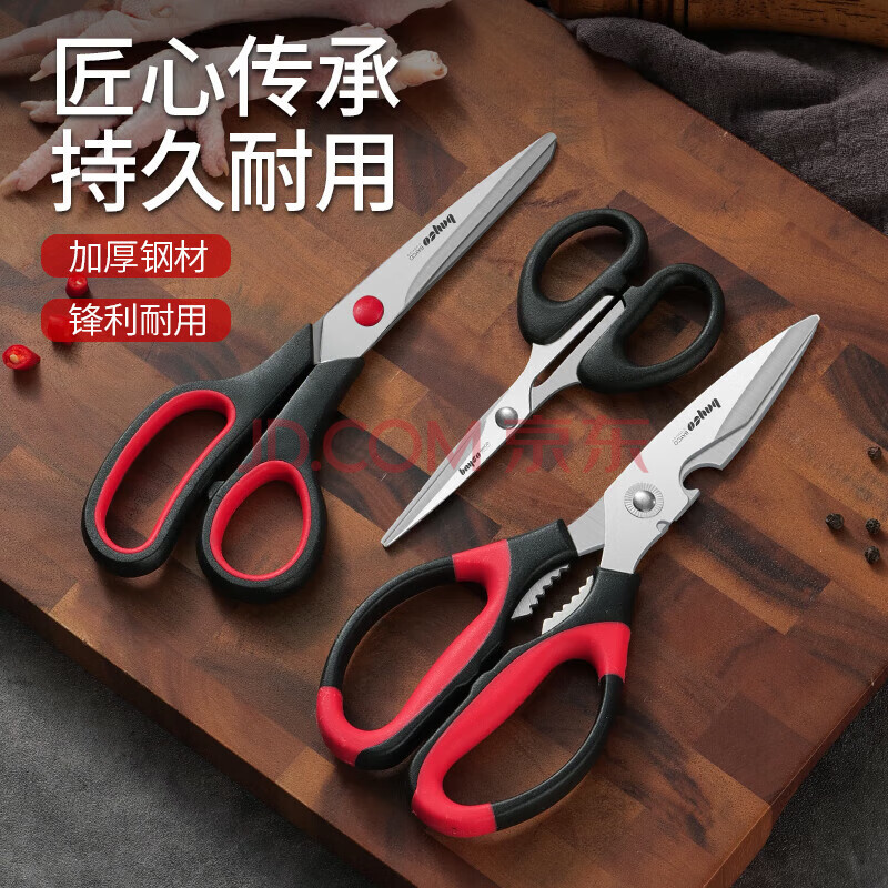 商品相册:拜格(BAYCO)家用剪刀三件套不锈钢厨房剪刀多功能裁缝剪办公手工剪ZH2851第