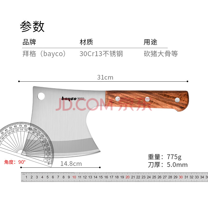 商品相册:拜格(BAYCO)菜刀不锈钢刀具砍骨专用刀斧头刀砍骨刀剁骨刀斩骨斧家用 BD2860第