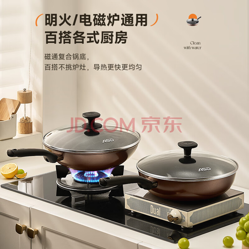 商品相册:爱仕达(ASD)炒锅不粘锅少油烟平底炒菜锅家用不沾锅32cm燃气电磁炉通用EC第