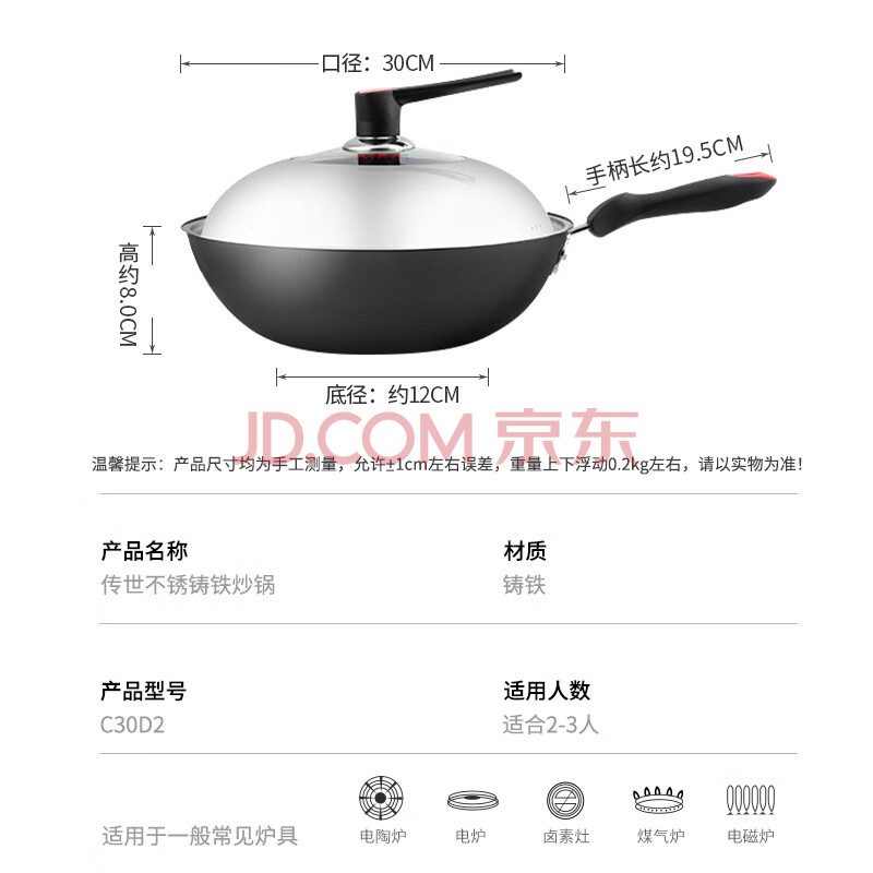 商品相册:炊大皇铁锅炒锅传世30cm无涂层铸铁炒菜锅具电磁炉燃气灶通用C30D2第