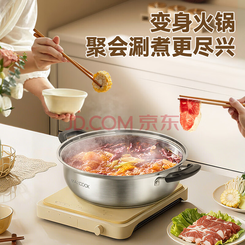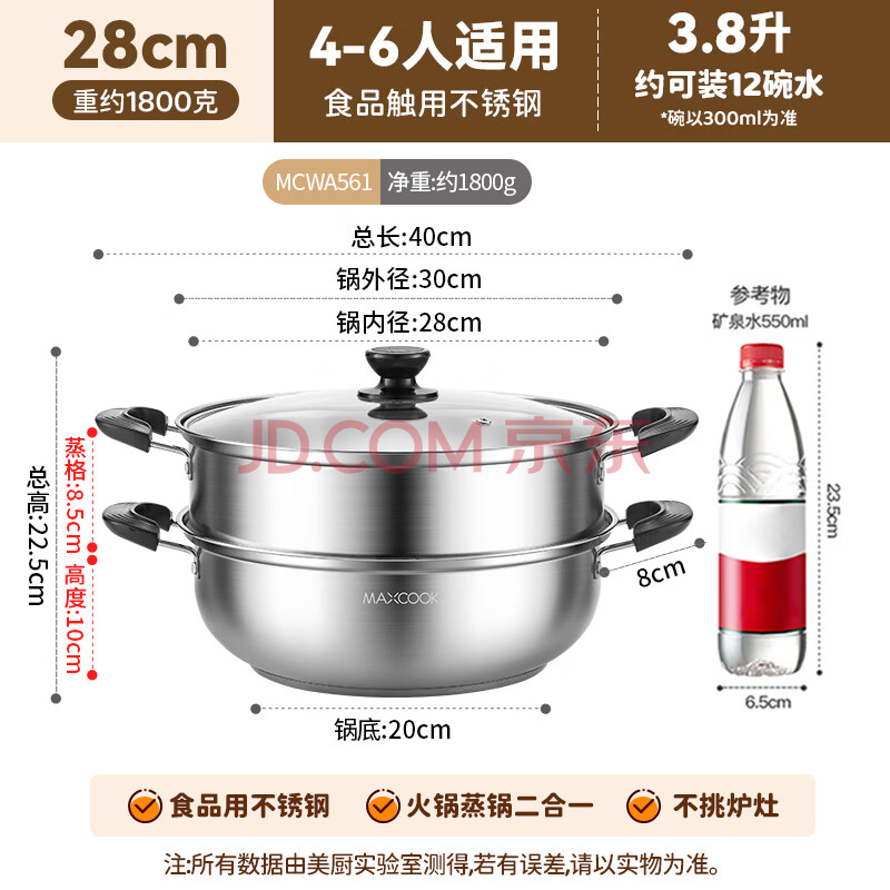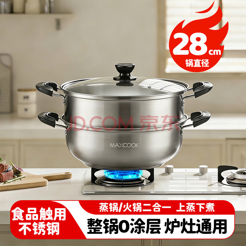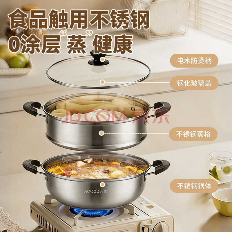 商品相册:美厨(MAXCOOK)不锈钢二层蒸锅 28cm复底火锅汤锅多用锅燃气灶电磁炉通用MCWA561第