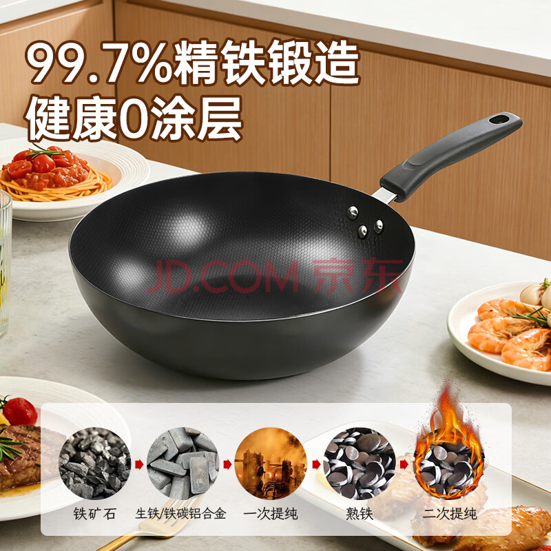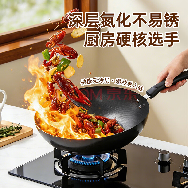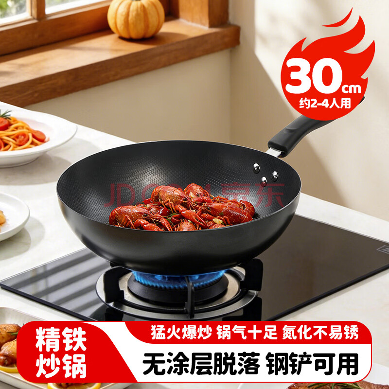 商品相册:美厨(MAXCOOK)炒锅铁锅30CM 燃气炉电磁炉通用 无涂层 可用铁铲 MDB-30第1张/共8