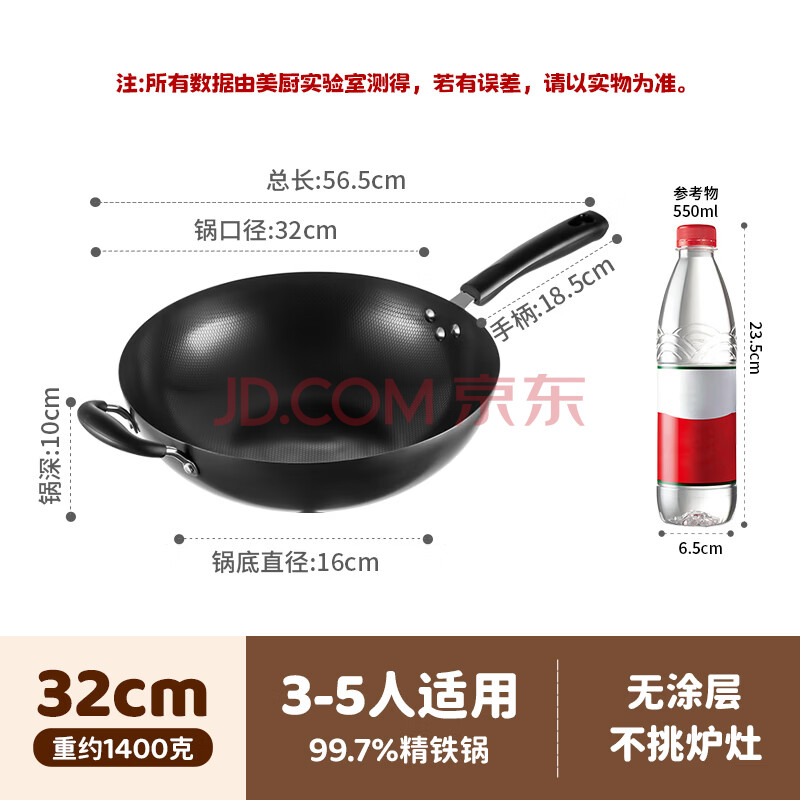 商品相册:美厨(maxcook)铁锅炒锅 32cm无涂层老式炒菜锅精铁锅 燃气炉电磁炉通用MDB-32第