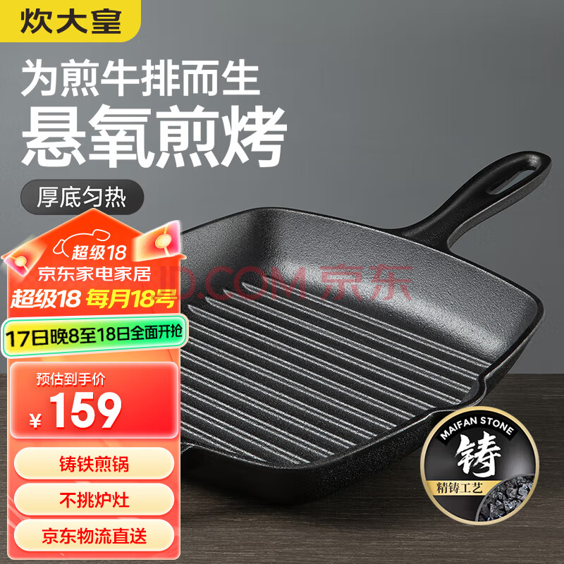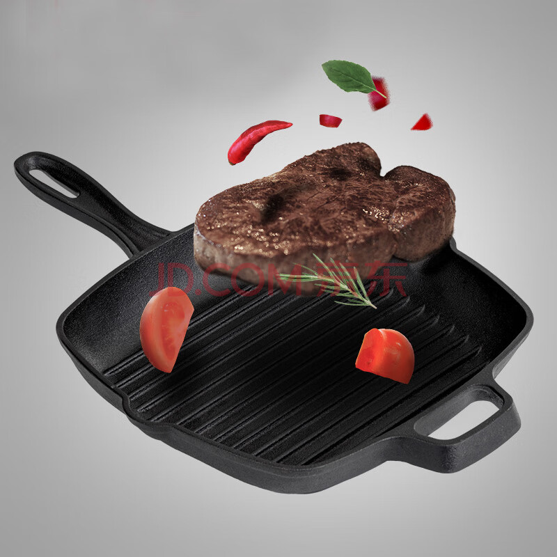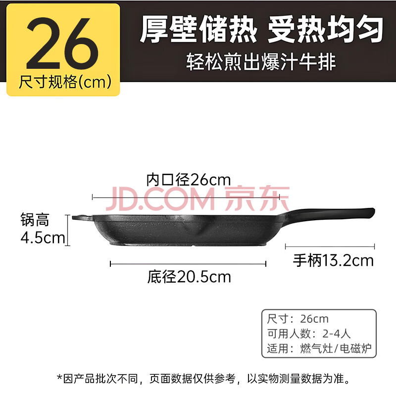 商品相册:炊大皇牛排煎锅 平底锅健康无涂层厚铸铁煎盘牛扒盘电磁炉通用26cm第