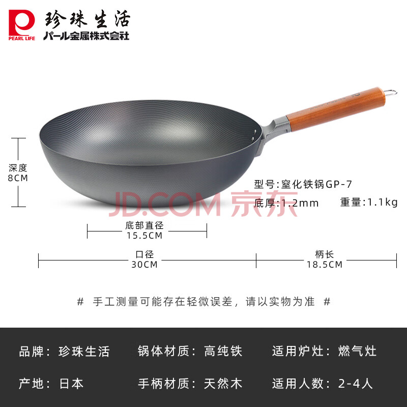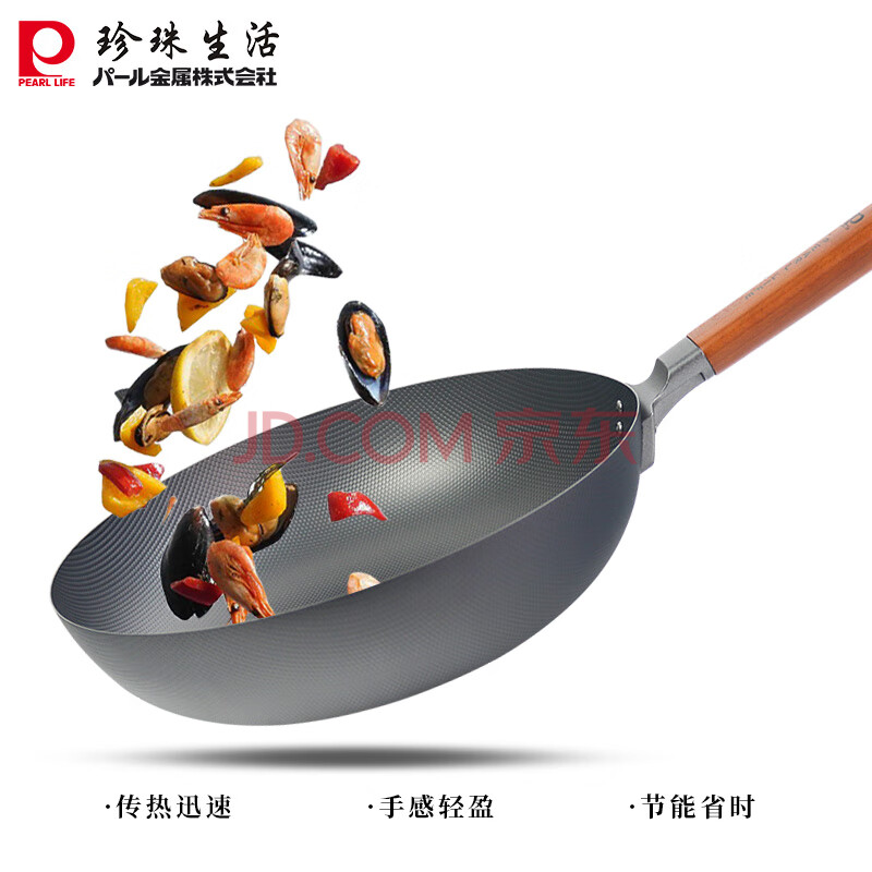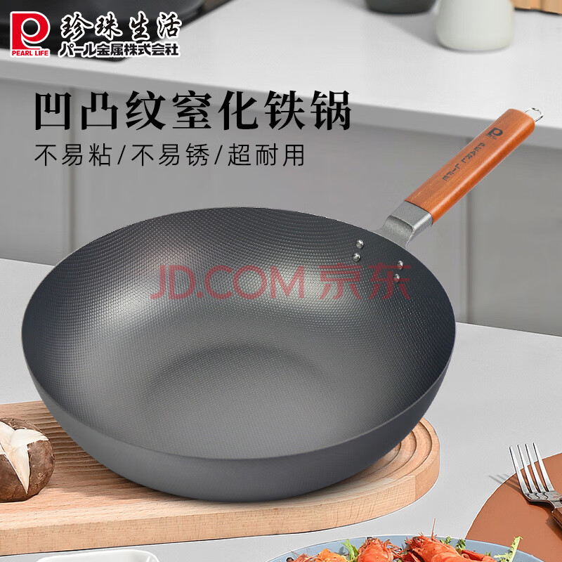 商品相册:珍珠生活日本窒化不易生锈铁锅炒锅 原装进口无涂层不易粘锅 家用炒菜锅第