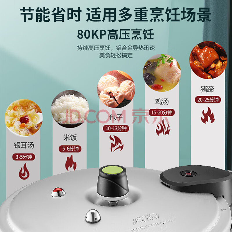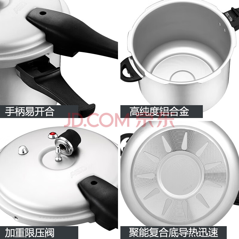 商品相册:爱仕达 ASD 高压锅燃气明火防爆六保险4.0L铝合金小号压力锅YL20S2WG第